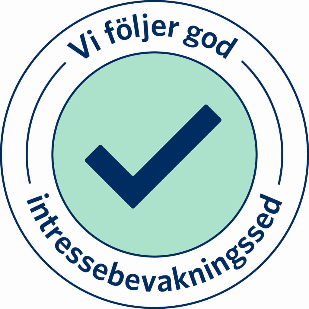 Rekommendationerna för god intressebevakningssed fungerar enligt självregleringsprincipen och uppmuntrar oss att agera ansvarsfullt. Vi rapporterar våra aktiviteter till öppenhetsregistret två gånger per år, handlar ärligt och respekterar andra och respekterar den demokratiska beslutsprocessen. Utöver rekommendationerna för god intressebevakningssed följer vi också våra egna etiska principer.